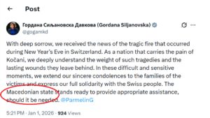 793) Πρόεδρος των Σκοπίων. 5 Ιανουαρίου 2026. Αναφέρεται σε “Μακεδόνικό κράτος” αντί για κράτος της Βόρειας Μακεδονίας, παραβιάζοντας το άρθρο 1, παρ. 3ζ της Συμφωνίας των Πρεσπών.